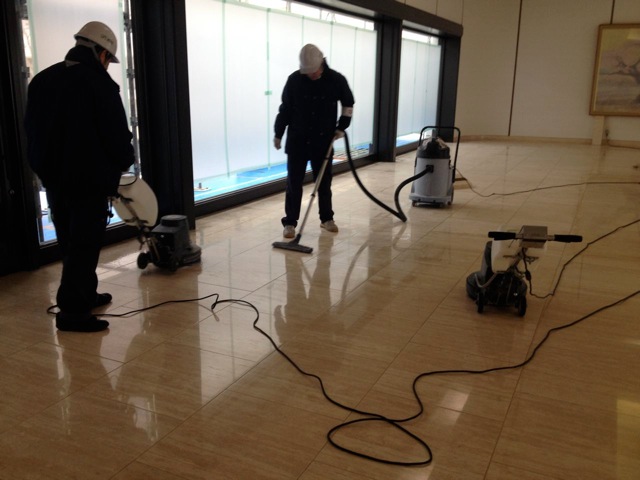 内部大理石(トラバーチン) 石表面からの白華現象(エフロレッセンス)の洗浄 研磨コーティングでの再発防止施工例です。
